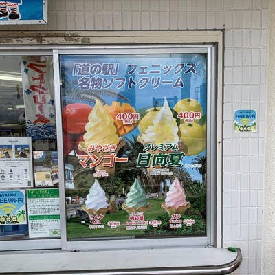 道の駅フェニックス 景色がよく最高な道の駅 ここに来たらみんな冬でもソフトクリーム食べてます🍦ᩚ早い時間にくると名物のホットドッグも数量限定で食べれます! 日向夏ソフトクリーム 400円 酸味があってかなりおいしい!口の中さっぱりするしまた食べ。