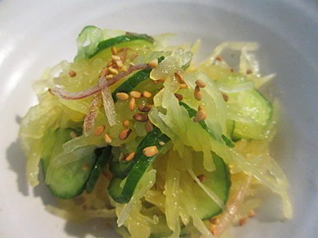 茹でるとそうめんのようにほぐれる金糸うりは、歯ごたえと淡泊な味を生かすレシピで。