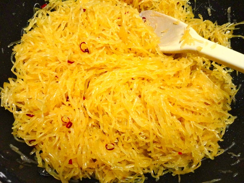 不思議なかぼちゃ 金糸うり とは?茹で方や食べ方も紹介食・料理オリーブオイルをひとまわし。