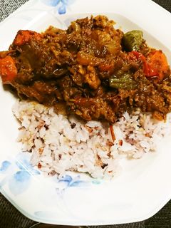 カレー スパイスカレー!!失敗覚悟で水の代わりにトマトジュースを入れてみた。