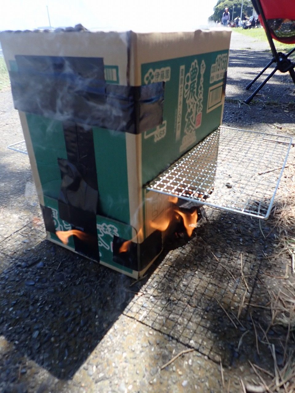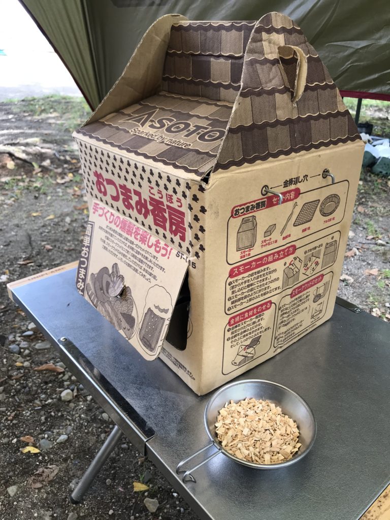 手作りダンボール燻製器デイキャンプ場での燻製作り方。