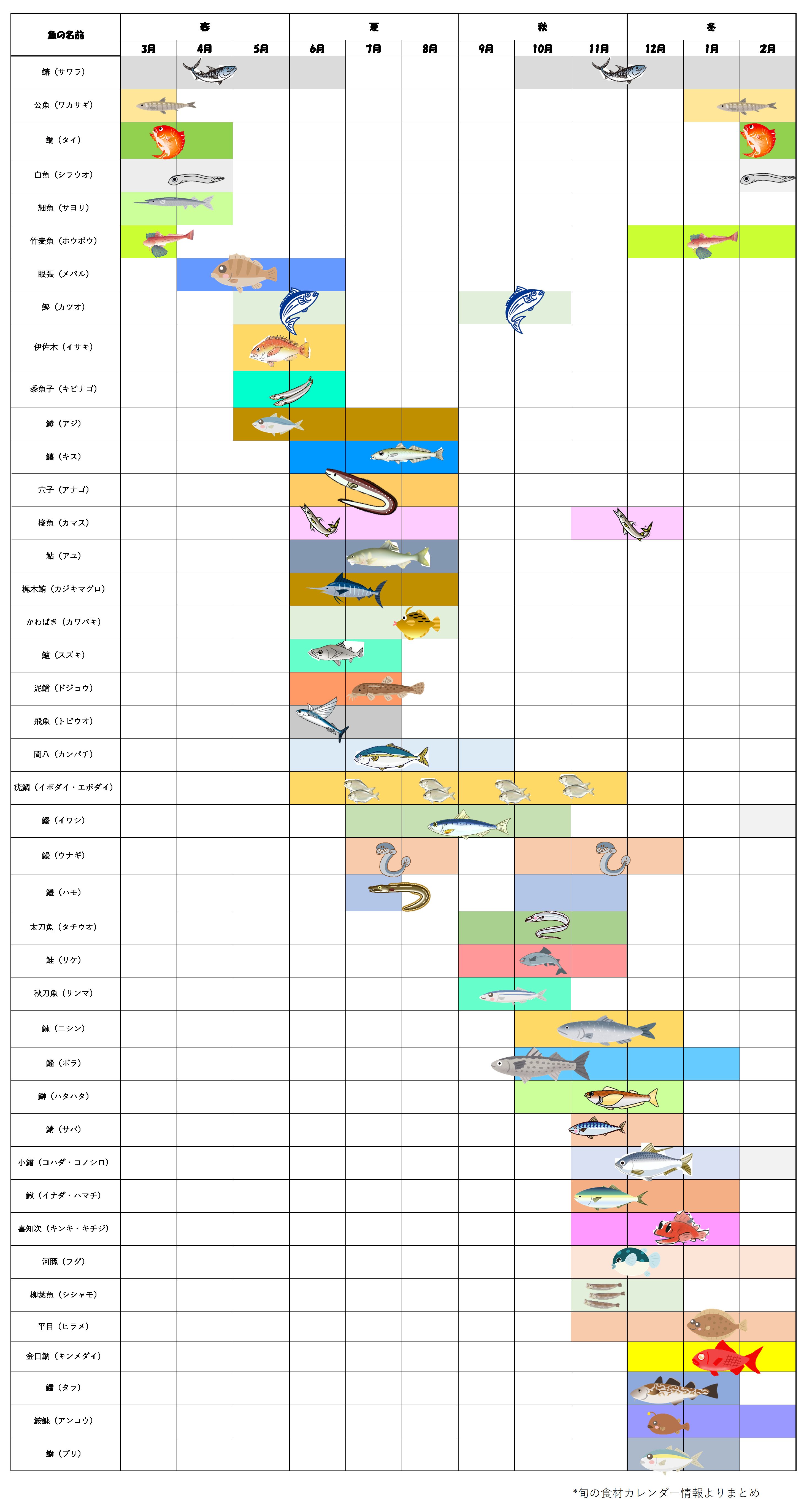 保存版 旬のおさかなカレンダー:魚のプロが教える12ヶ月の美味しい魚選び – 飲食店向け業務用仕入サイト - 居酒屋応援隊。