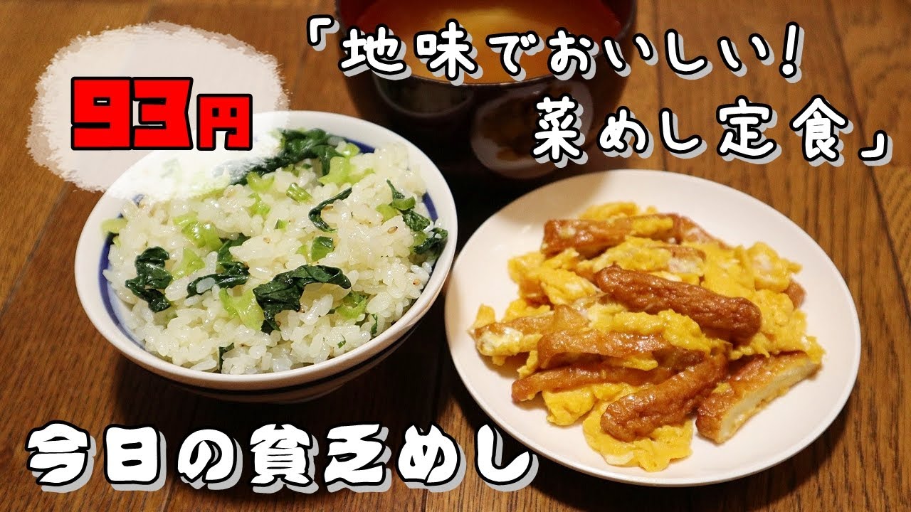 今日の貧乏めし地味でおいしい!菜めし定食93円 貧乏飯、貧乏料理レシピ。