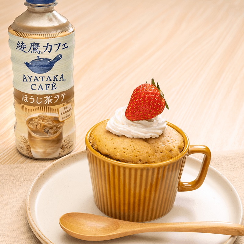 綾鷹カフェ ほうじ茶ラテのレンジで簡単もっちりケーキ。