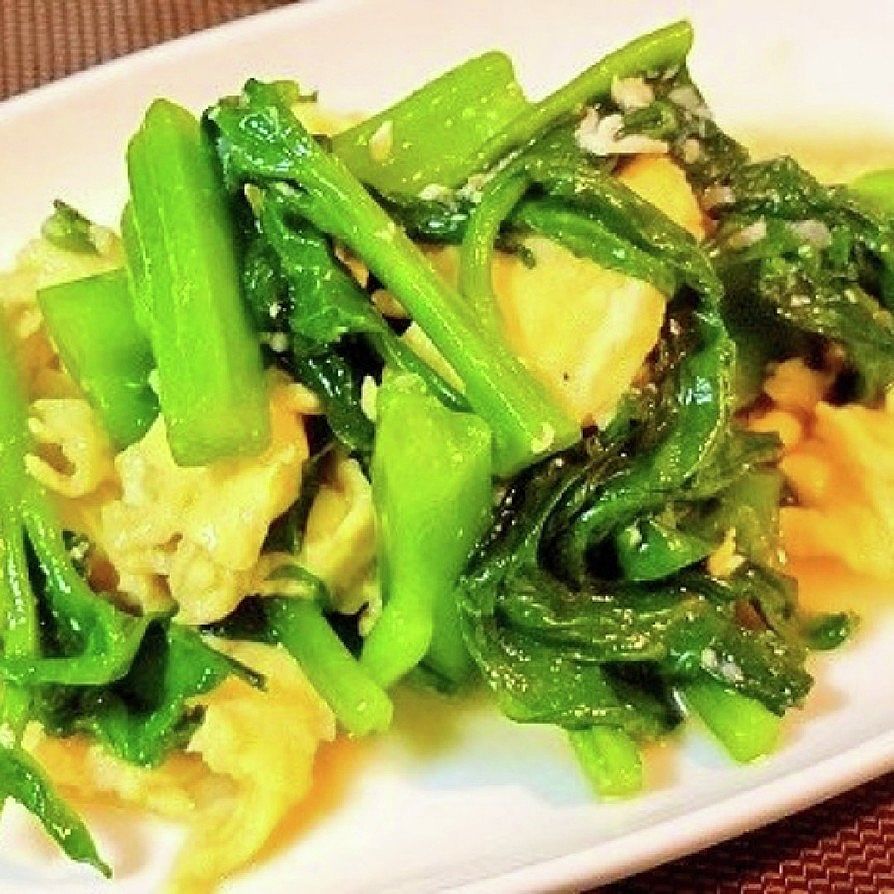 つるむらさきのニンニク香る炒り卵炒めやさいのキラメキ。