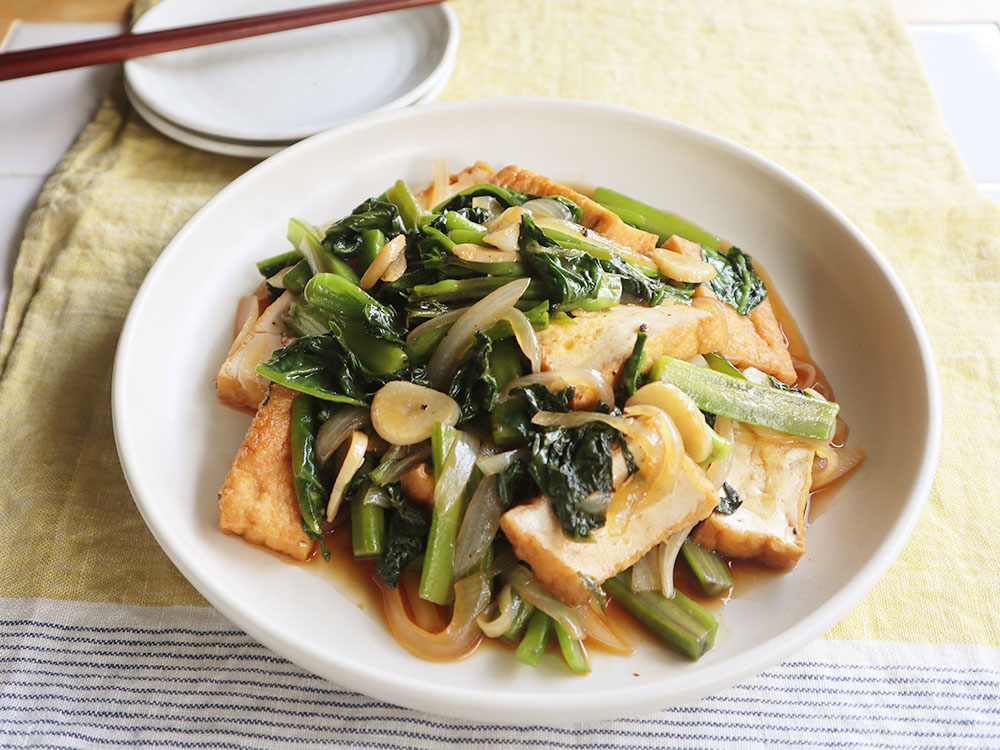 つるむらさきと厚揚げのさっと炒め 管理栄養士レシピ かんたんレシピみっくすなっつ アイチョイスのWEBマガジン。