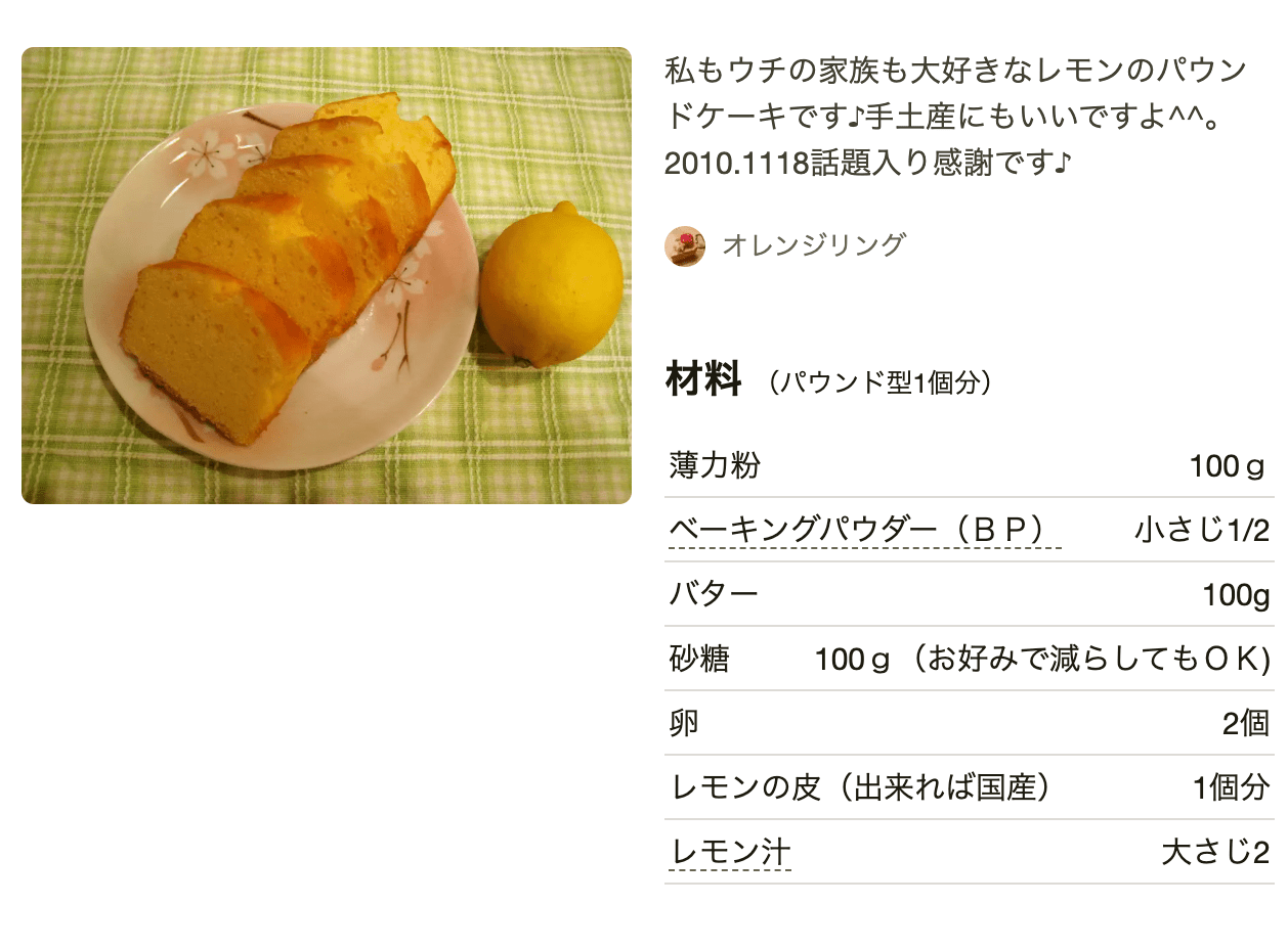 レモンパウンドケーキ by オレンジリングクックパッド簡単おいしいみんなのレシピが392万品。