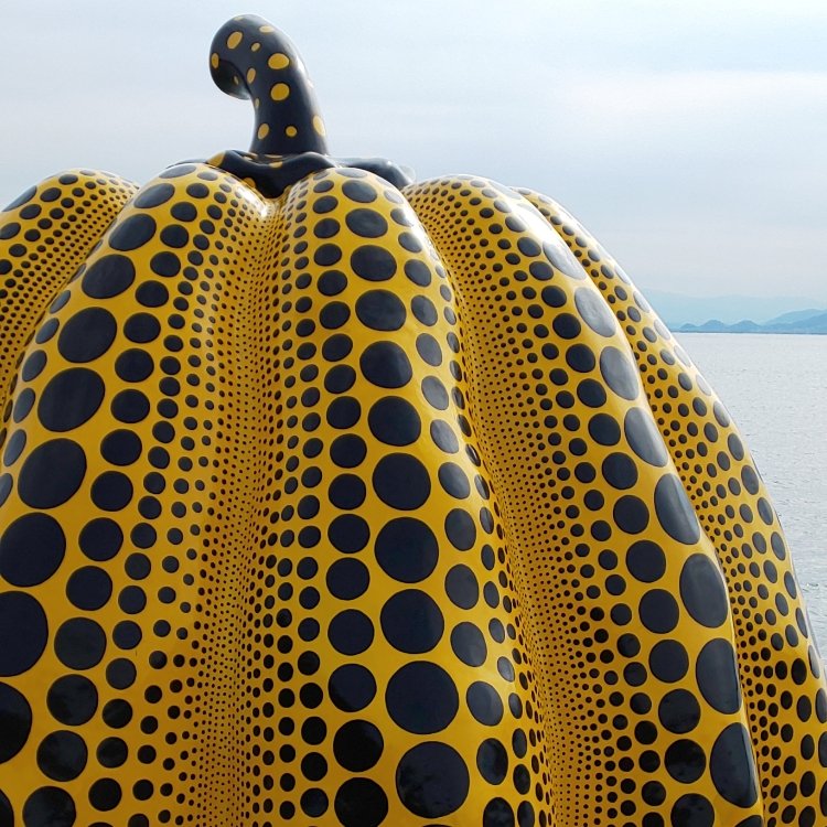 直島のシンボル✨️黄色いかぼちゃ🟡⚫️ 香川県 直島 黄 か ぼ ち ゃ 1994年に公開された草間彌生さん作の黄色いかぼちゃ🟡⚫️ 正式な作品名は『 南瓜 』 黄色と黒という組み合わせに 先日postした赤かぼちゃ同様草間彌生さんらしい。