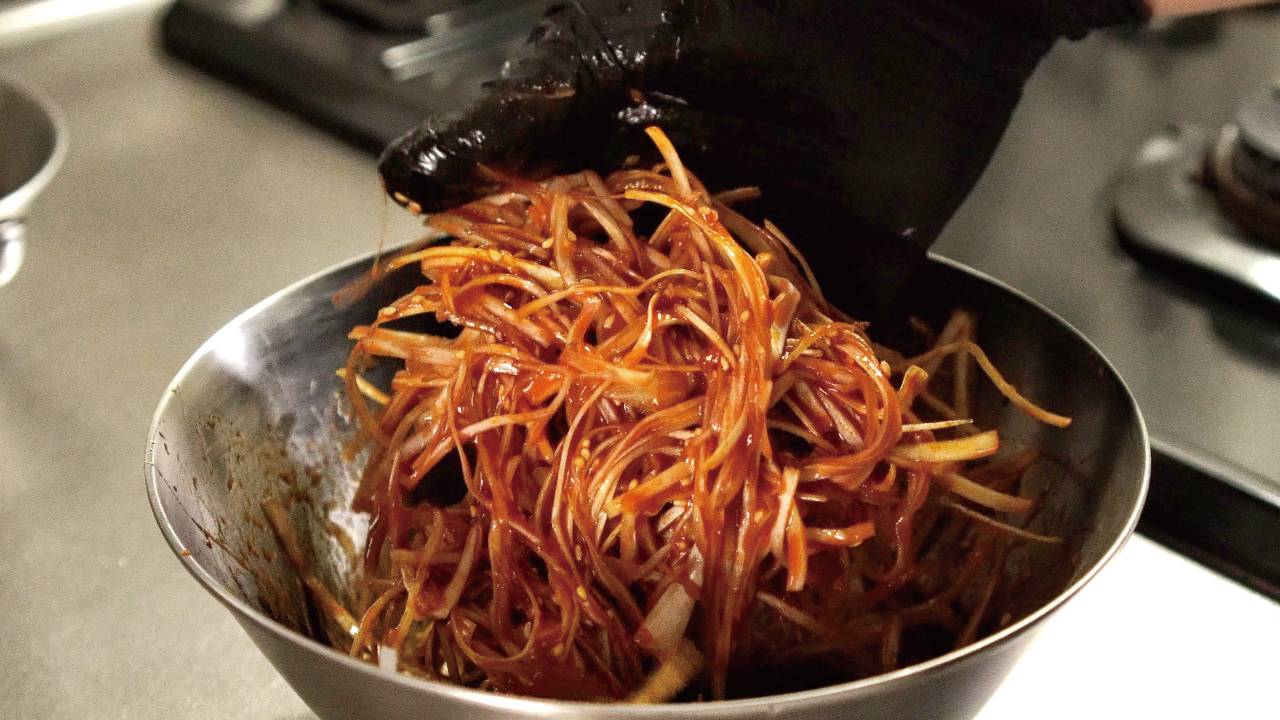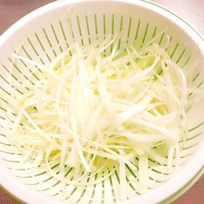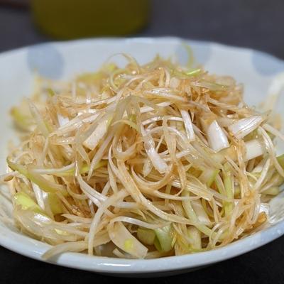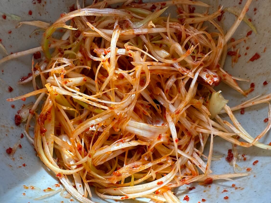 白髪ねぎの韓国風サラダ。サムギョプサルにパジョリは欠かせない。
