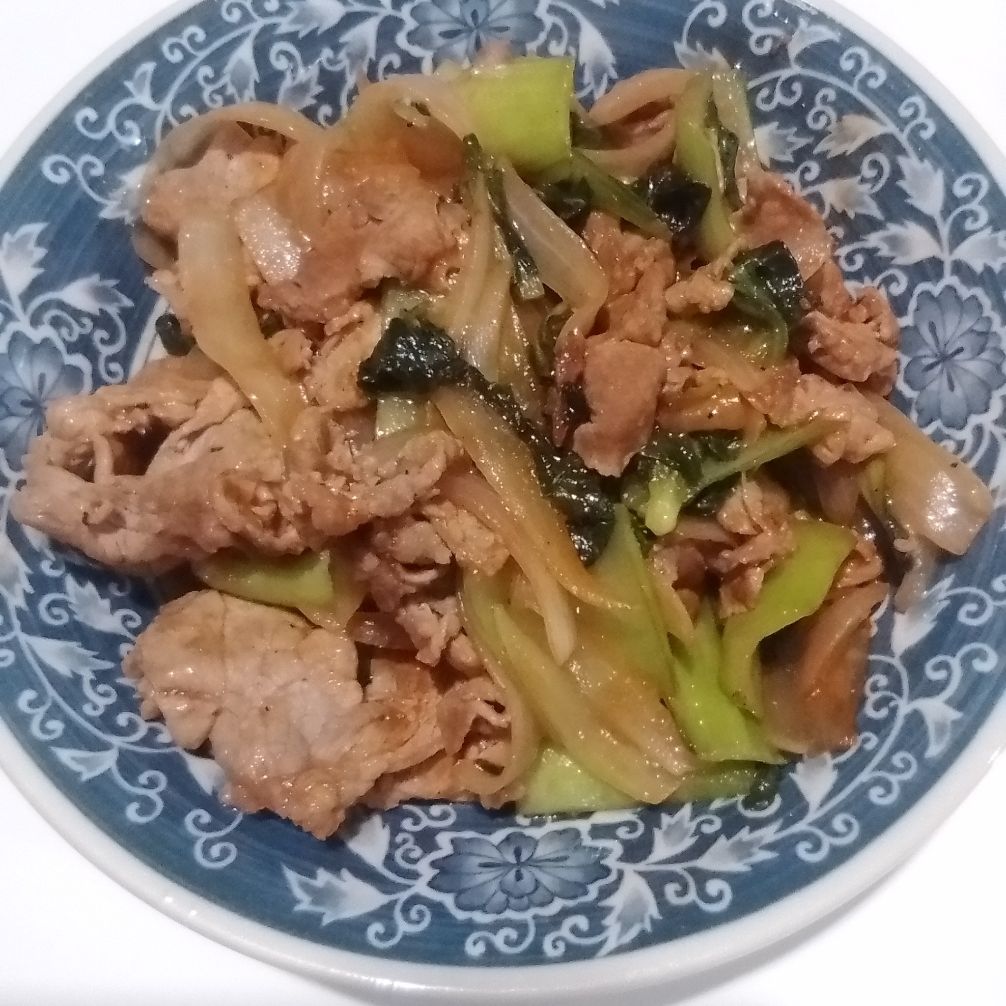 豚肉とチンゲン菜と玉ねぎのニンニク生姜炒め^_^。