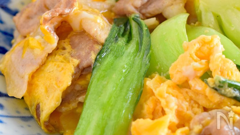 チンゲン菜と豚肉と卵のコクうま炒めレシピ・作り方ネスレ日本 製品情報サイト。