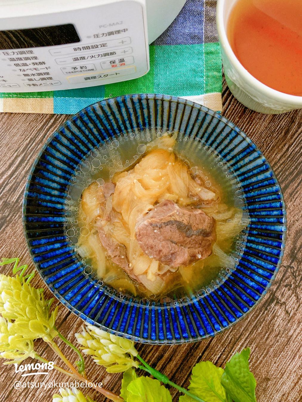 ariko shima miyajima牛スネ肉を圧力鍋で煮れば、お肉はほろほろ、美味しいスープができる。肉が柔らかくなったところに小さな玉ねぎと下ゆでした大根。味付けは塩だけ、滋味あふれる味わいに。牛すね肉牛すね肉の煮込み圧力鍋は怖くないよInstagram。