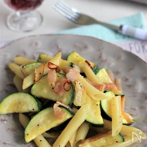 簡単シンプルなのにおしゃれ♪ ズッキーニのペペロン風パスタのレシピ。