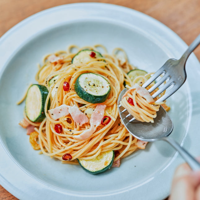 夏バテにはこれ!豚肉とズッキーニのペペロンチーノスタミナ満点の簡単パスタレシピ – CAN PASTA。