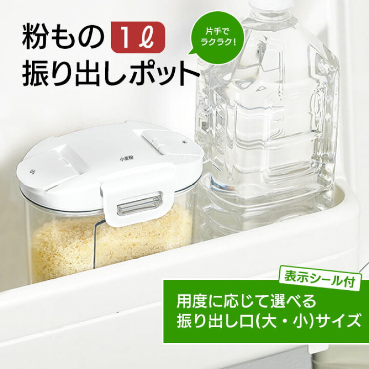 楽天市場 粉もの振り出しポット 1L 粉もの 冷蔵庫保存 冷蔵庫 保存容器 表示シール付き ダニ対策 湿気対策 コンパクトサイズ 乾燥剤入れドアポケット 収納 乾燥剤ポケット 粉もの収納 ダニ 湿気 小麦粉 片栗粉 ☆60粉もの振り出しポット : TOKUTOKU。