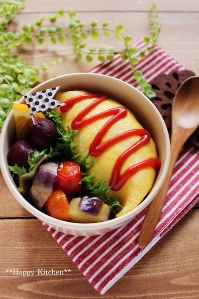お弁当中 〜obento tyu〜: ふわふわスフレオムライス弁当~Souffle omelet rice bento。