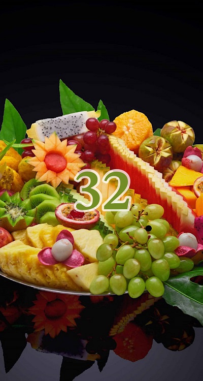 シウマ・エンジェルナンバー「32」と「フルーツ盛り合わせ」の無料おしゃれ待ち受け画像・壁紙うらちゃん。