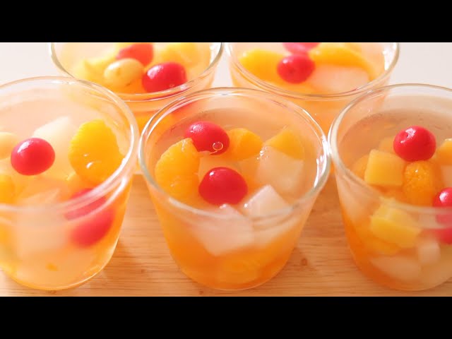 混ぜて冷やすだけ! 超簡単フルーツゼリーの作り方Fruit Jelly recipe - YouTube。