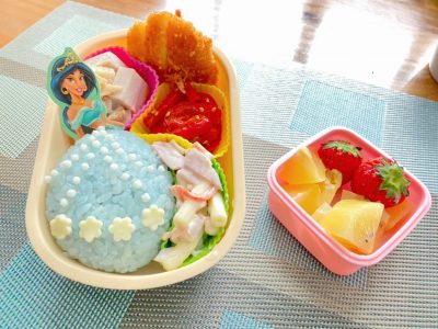 みら❁¨̮キャラ弁♥お弁当記録 on X: "今日はプリンセス弁当💖ジャスミンです💚娘がキュウリを克服したらしく、キュウリでドレス作ればジャスミンもいけるんじゃないー?と提案されたので作ってみましたwきゅうりの下に高菜ふりかけ🍙入ってます🤣今日のお弁当今日の。
