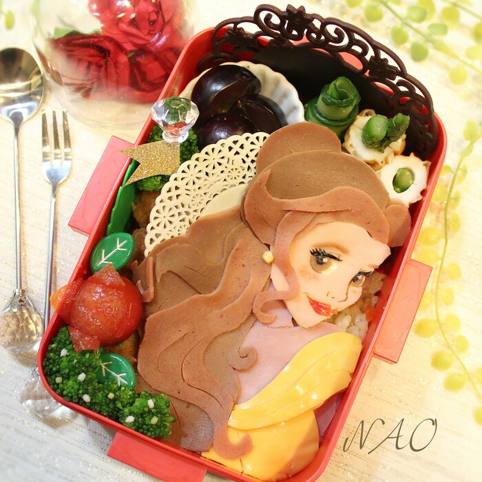 みら❁¨̮キャラ弁♥お弁当記録 on X: "今日はプリンセス弁当 でした🎀美女と野獣のベルだよ🥀✨🏰ドレスはオムライスです🍀薔薇の花はカニカマとハムをくるくる✨新しく買ったプリンセスのお弁当箱や水筒も可愛い〜😍美女と野獣ベル弁当今日のお弁当お弁当記録お。