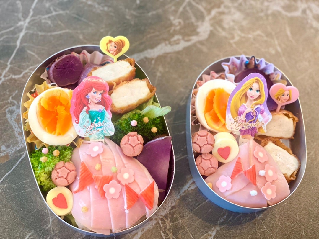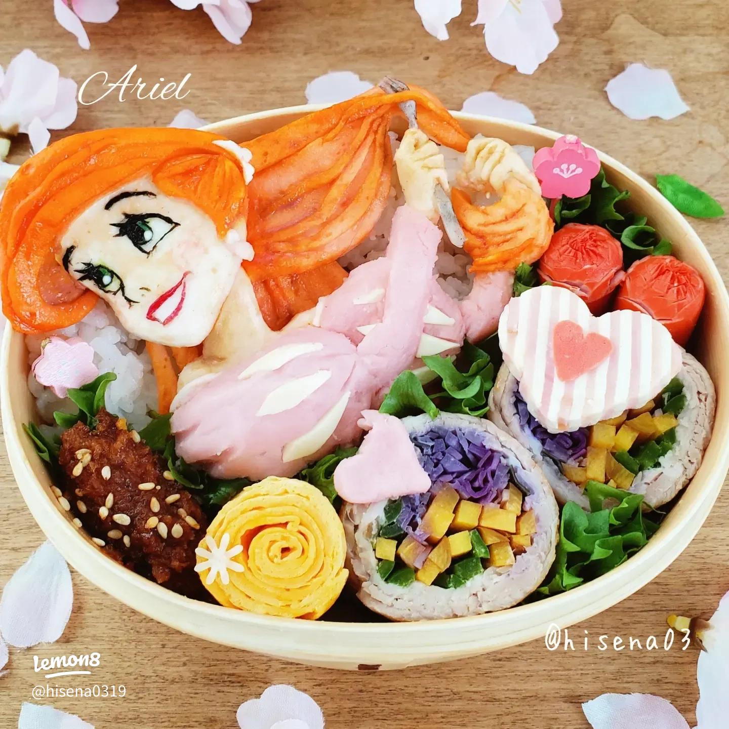 アリエルとラプンツェルの華やかなプリンセスコンビのキャラ弁です♪ ラプンツェルの難しい三つ編みはくるくる巻いて簡単仕様に♪ プリンセス好きな女の子のお 弁当にぜひ作ってみてください! ◇詳しい作り方は公式WEBサイトへ https:mabre.jp◇MABRE公式インスタ。