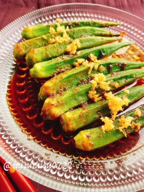 オクラのマリネ 焼きオクラの生姜醤油漬け 動画レシピMarinated okra with gingerほっこりおうちごはん。