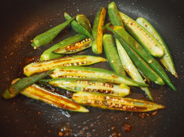 フライパンで美味すぎ副菜♪オクラのめんつゆバター焼き。