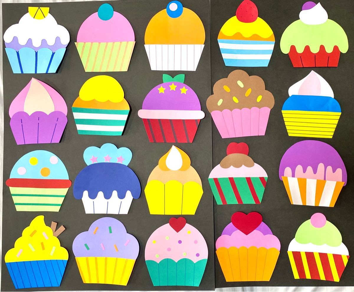 スイーツ カップケーキ 壁面 壁面飾り 誕生日 お誕生日表 保育 画用紙 クラフト・布。