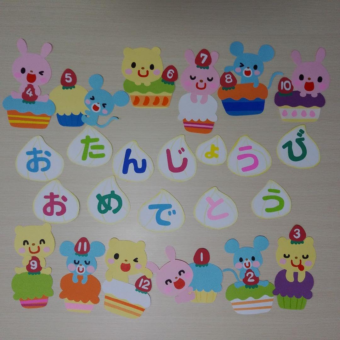 Amazon.co.jp: おめでとう♪ 壁面飾り 誕生日 幼稚園 保育園 施設 お祝い ケーキ 花 動物 : おもちゃ。