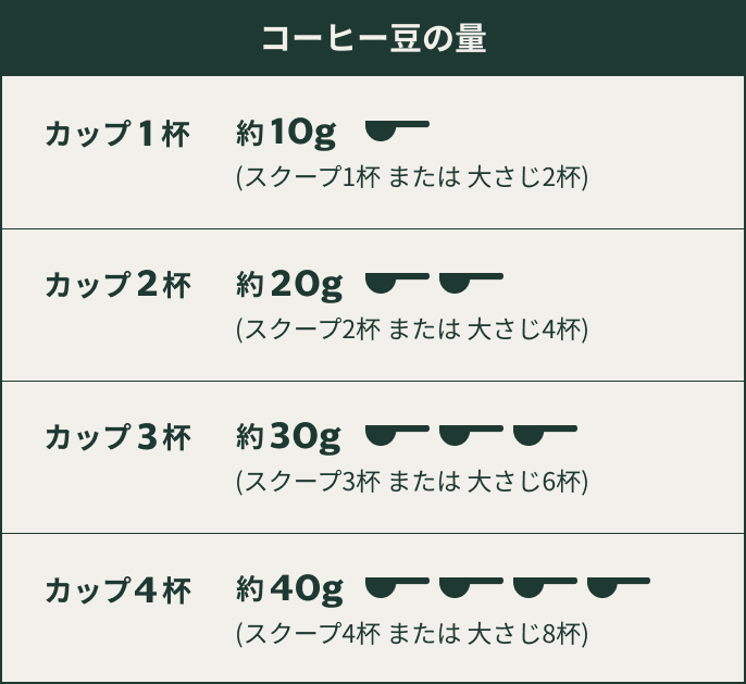 コーヒー豆の量は何グラムが最適?計量スプーンの容量とカップごとのグラム数を解説。