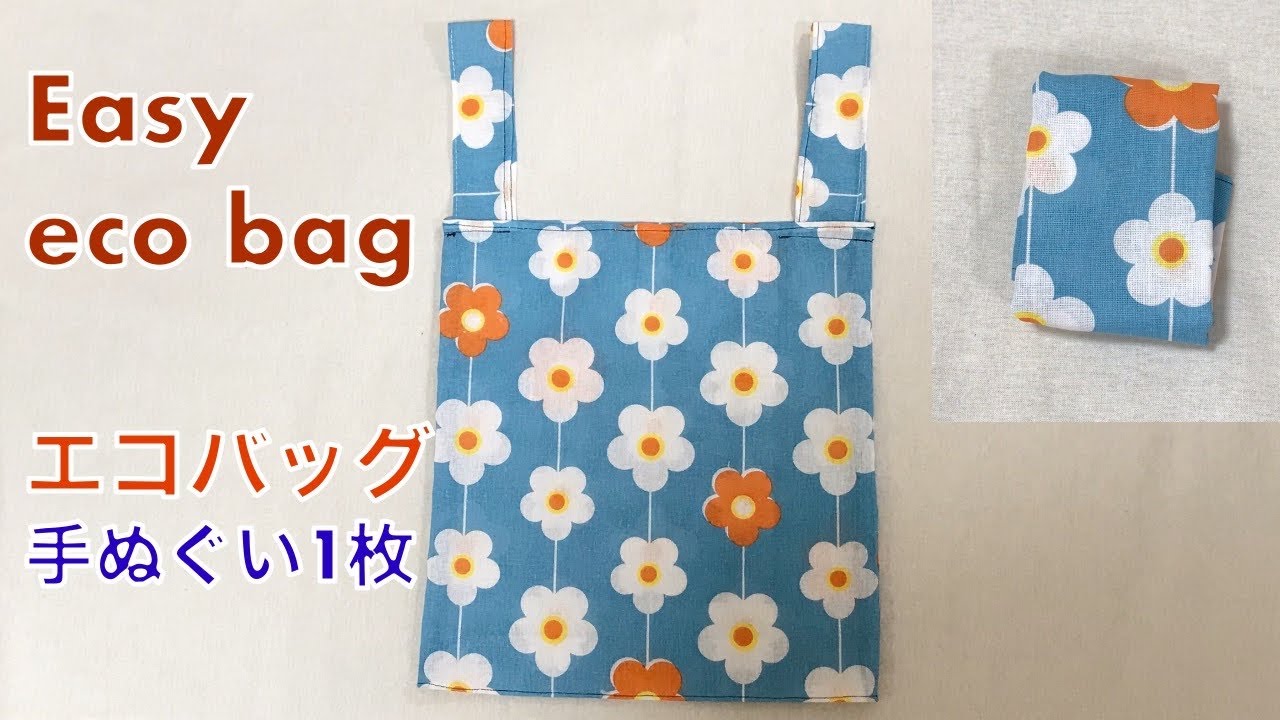 超簡単!100均 手ぬぐい1枚で出来る ハンカチエコバッグの作り方 手縫いもOK★4ヶ所縫うだけ!★マチ付き。