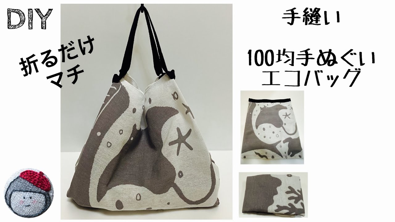 手縫いで作る100均手ぬぐいエコバッグ マチは折るだけ!初心者向け。