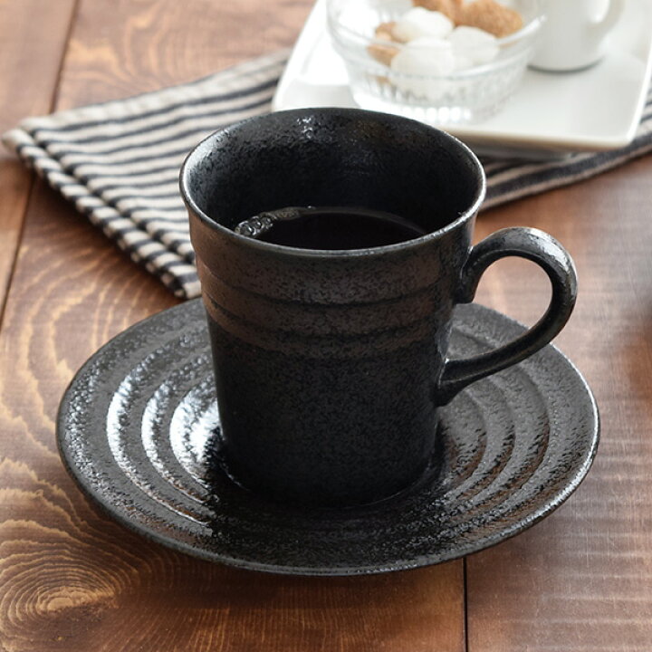 トールコーヒーカップ&ソーサーボーダー黒耀 コーヒーマグ カップ コップ お皿 プレート 中皿 来客セット おもてなし 食器セット 洋食器和食器 黒い食器 カフェ食器EAST table。