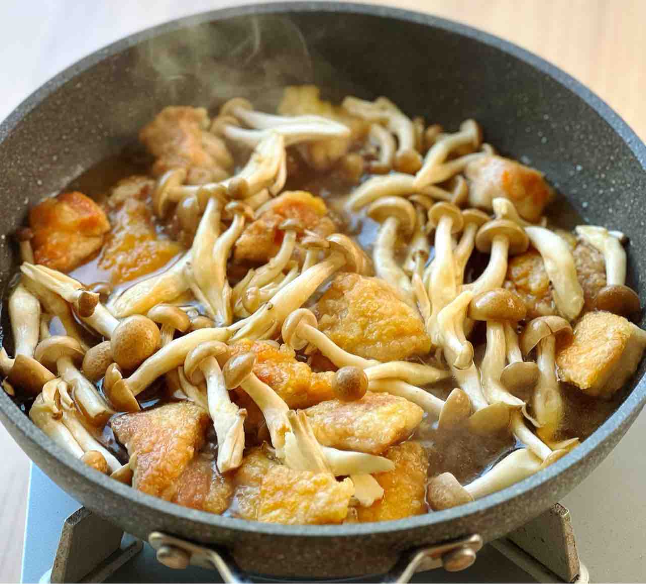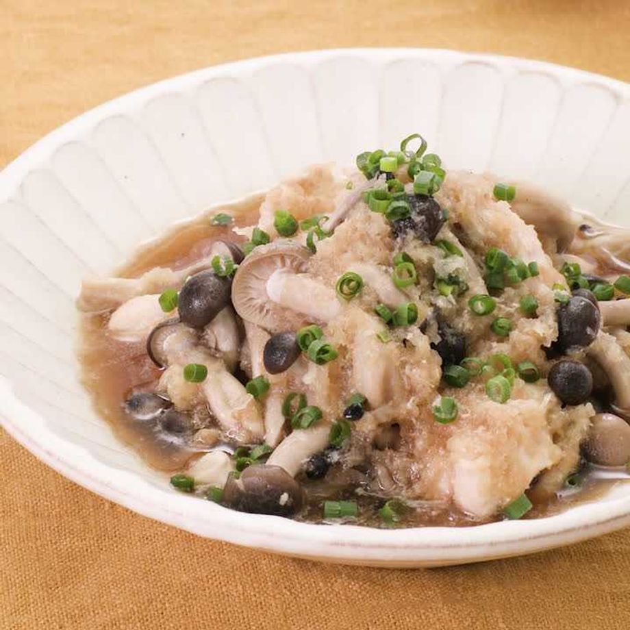 めんつゆでラクラク♪『鶏むね肉としめじの揚げだし風みぞれ煮』。