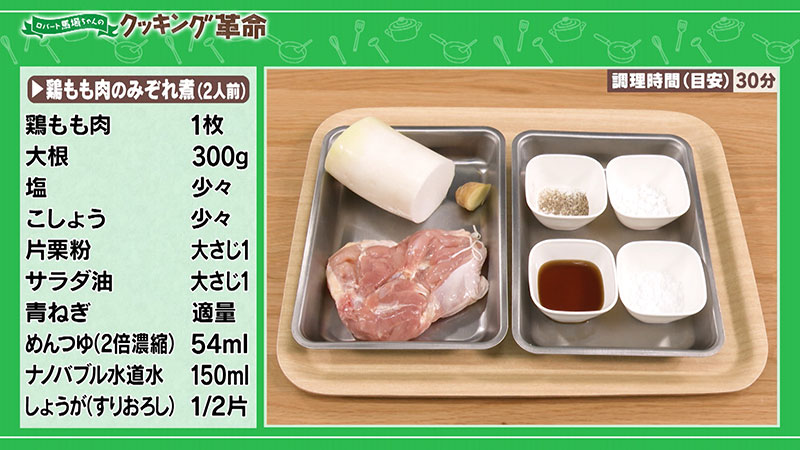 28「さっぱり!鶏もも肉のみぞれ煮」ロバート馬場ちゃんのクッキング革命旅・グルメ番組BS無料放送ならBS12 トゥエルビ。