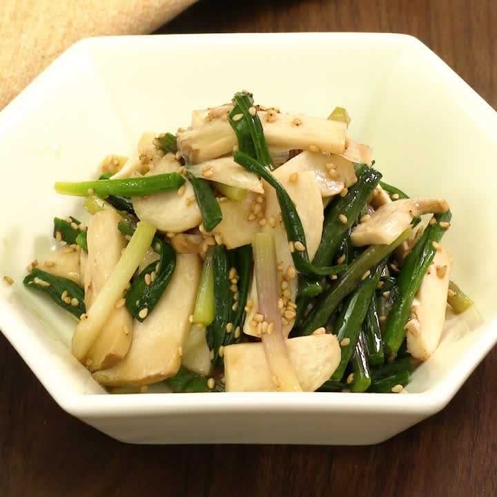シャキシャキ食感♪ 行者にんにくときのこのナムル。