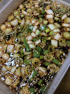 行者にんにく薬味漬け』 🌱山わさび×かつおぶし🌱 ・めんつゆ ・醤油行者にんにく、白ネギ、生姜、山わさび、かつおぶし、唐辛子神レシピキター!!! @iamieasa さんが行者にんにく醤油漬けに山わさび入れててめっちゃ美味しそうすぎて速攻真似っこ *´-`薬味漬けの。