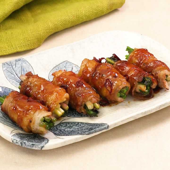 行者にんにくの醤油漬けアレンジ!茄子の肉巻きと付け合せおかずの献立レシピあゆmemo。