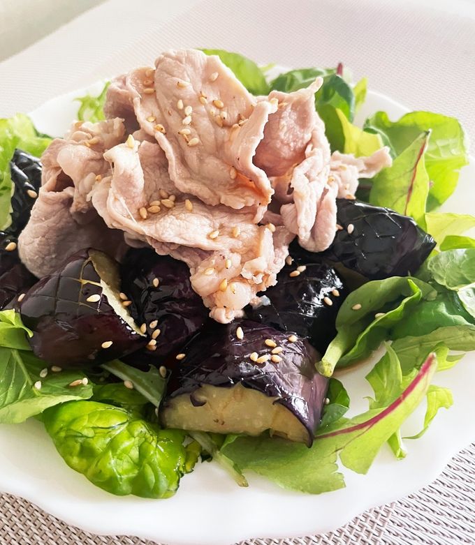 ナスと豚しゃぶ肉の香味ドレッシングサラダEggplant and pork shabu-shabu meat dressing saladkurashiruクラシル- YouTube。