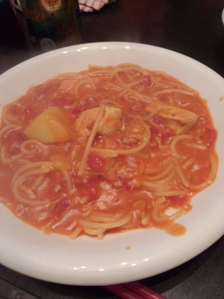 クリームシチューリメイク ケチャップでトマトクリームパスタmikiのおうちごはん♡。