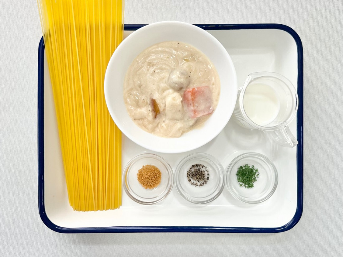 シチューをリメイクするだけで作れる絶品「クリームスープパスタ」。