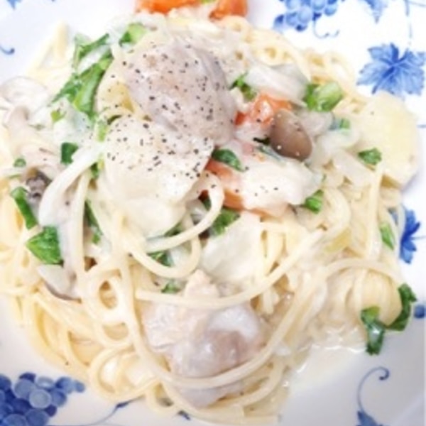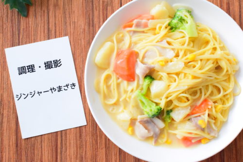残りシチューのクリームソースパスタきちんとレシピフードソムリエ。