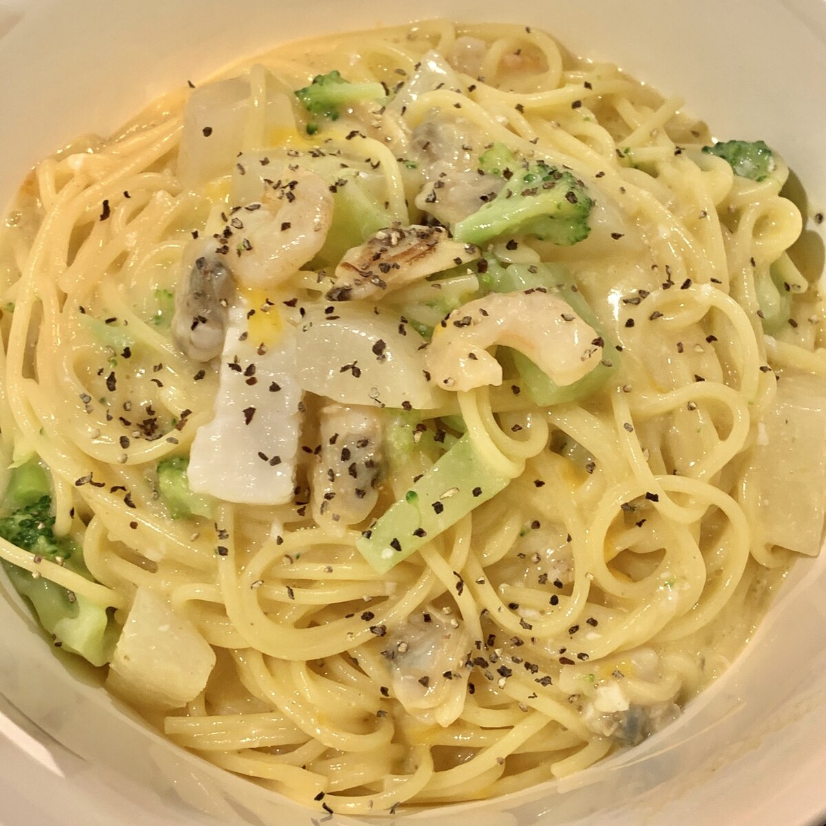絶品!カルボナーラ♪シチューの残りで簡単美味しい~☆kameyo 料理家 かめ代。