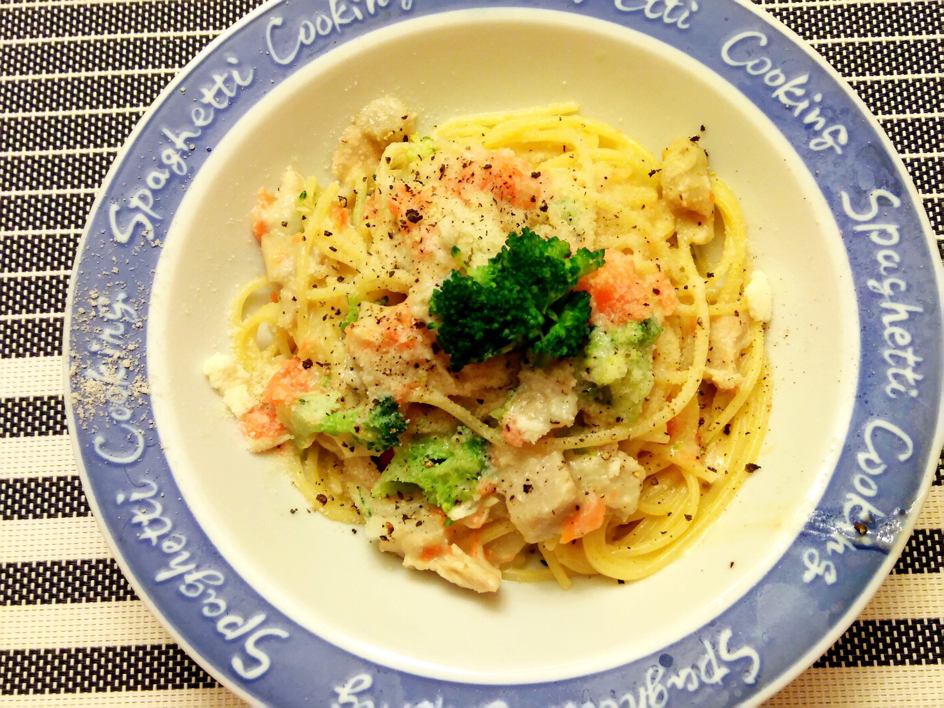 オヤジ特製 晩ご飯のクリームシチューをリメイク八丁味噌を加えた名古屋風の味噌クリームパスタ娘用だよ TETSU♪😋Snapdish スナップディッシュID:muvy1a。