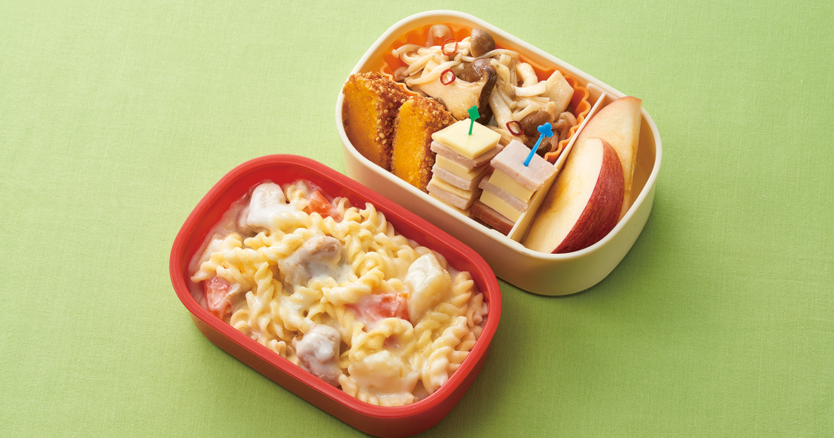 おかずリメイク弁当 ホワイトシチューでクリームパスタ弁当。