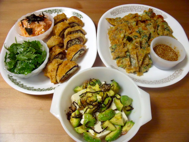 献立 ねぎと大葉のチヂミ、焼き米茄子、きゅうりとわかめの酢の物、ニラのお味噌汁、ビール : kajuの□今日のお料理・簡単レシピ□。