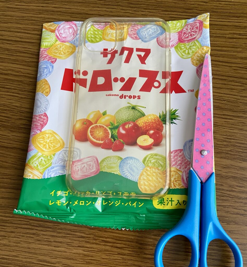 100均スマホケースをお菓子の袋でアレンジ!カオブロ。
