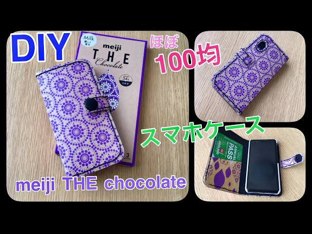 ほぼ100均でDIY meiji The Chocolateの空き箱を使ったスマホケースの作り方 ~お菓子のパッケージで楽天ミニのスマホカバーをハンドメイド~- YouTube。