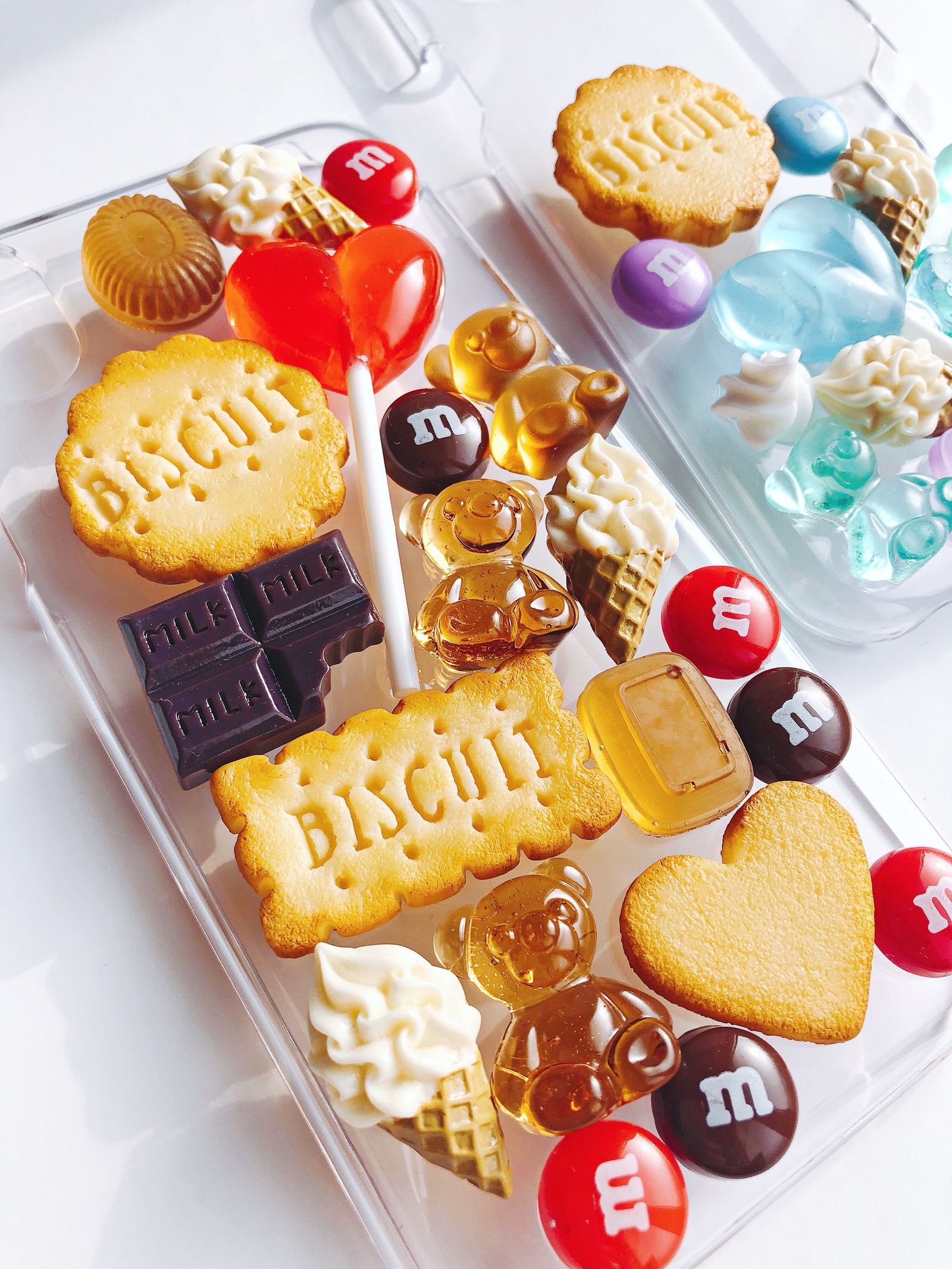 ω・山盛りお菓子のスマートフォンケースの作り方スマホ・タブレットリメイク・デコレーション アトリエハンドメイドレシピ 作り方 と手作り 情報サイト。