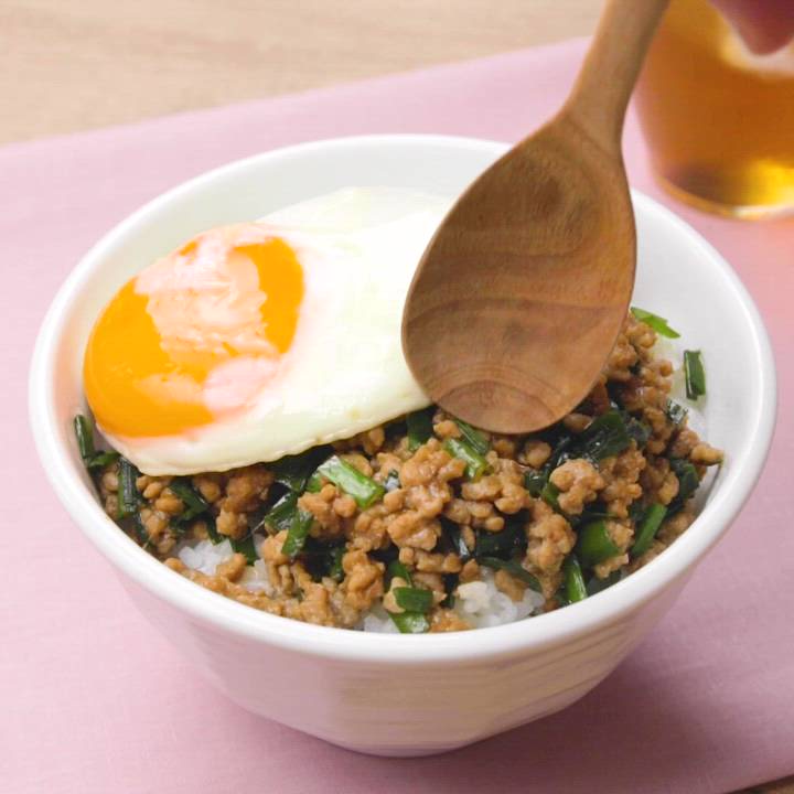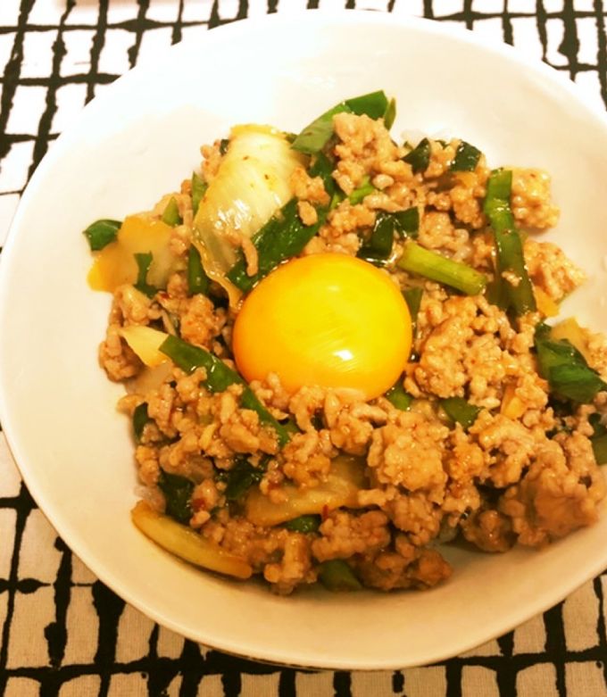 ひき肉ニラ丼の作り方 手軽に作れてめちゃくちゃ美味い!やみつきになる丼レシピ 一人暮らしの自炊を応援。